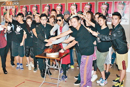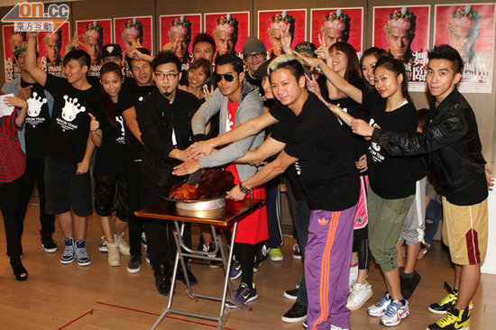 一眾舞者與郭富城一齊切燒豬,預祝個唱成功
