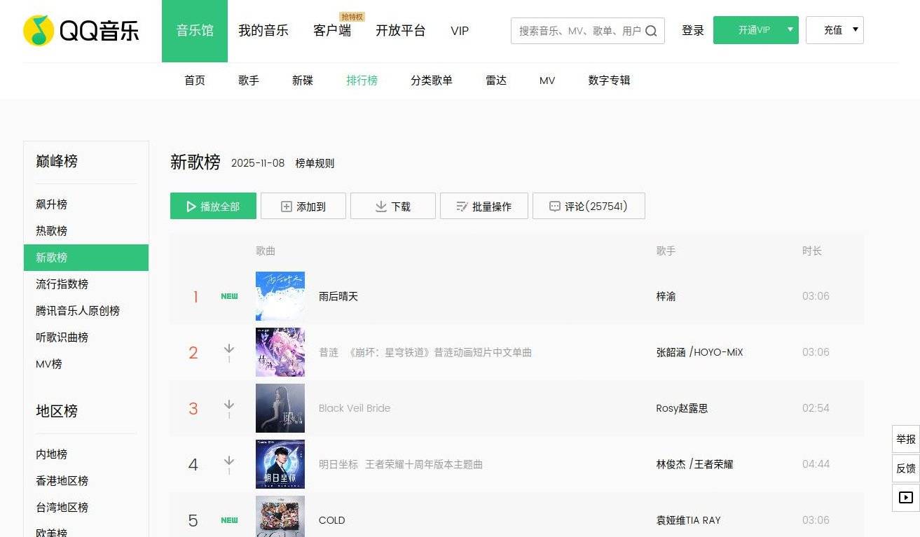 QQ音樂首日成績,熱歌榜新歌榜飆升榜排第1