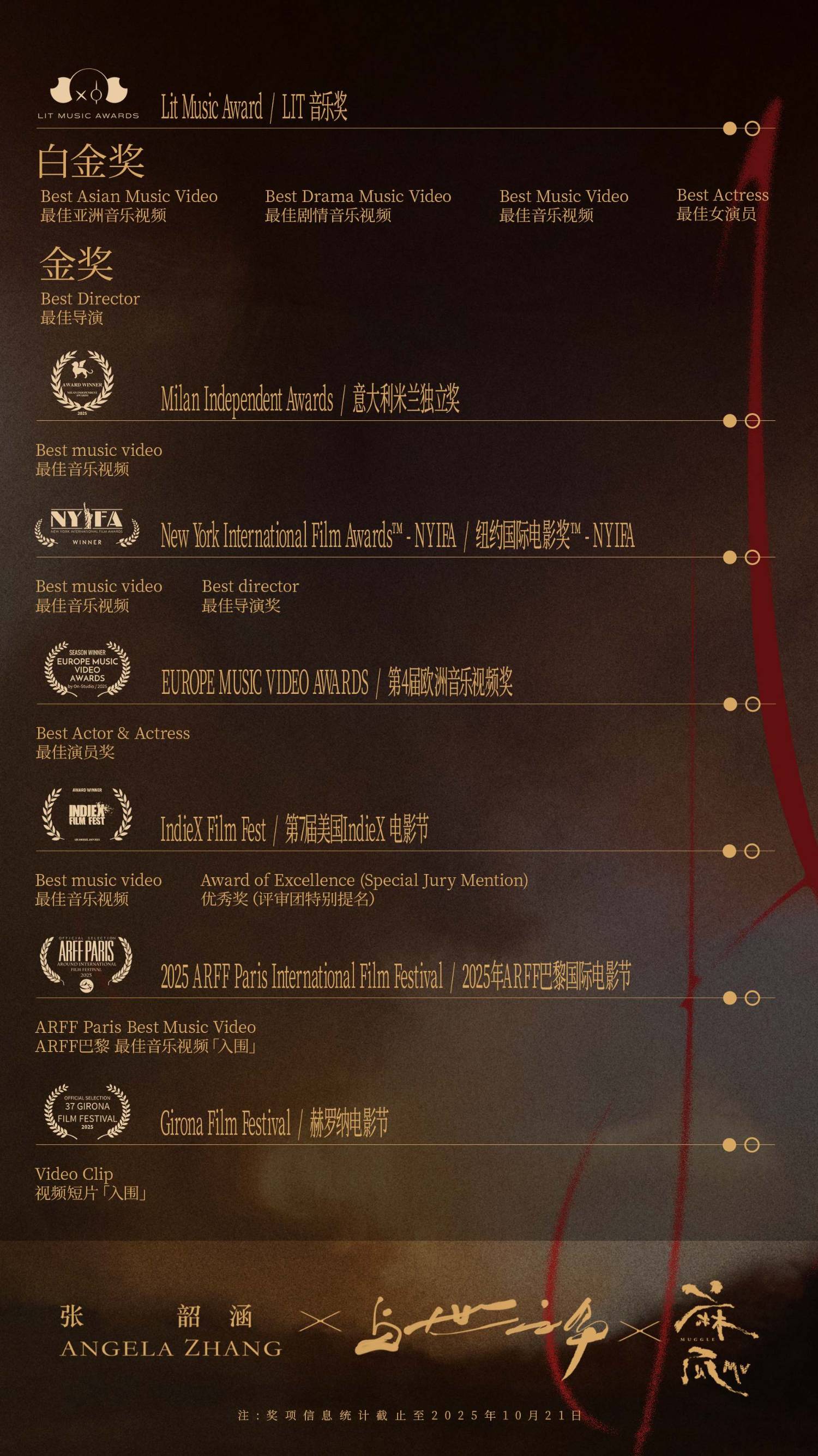 國民天后@張韶涵 第11張個人專輯《與世之爭》上篇“有爭”主打曲《麻瓜》MV獲獎情況