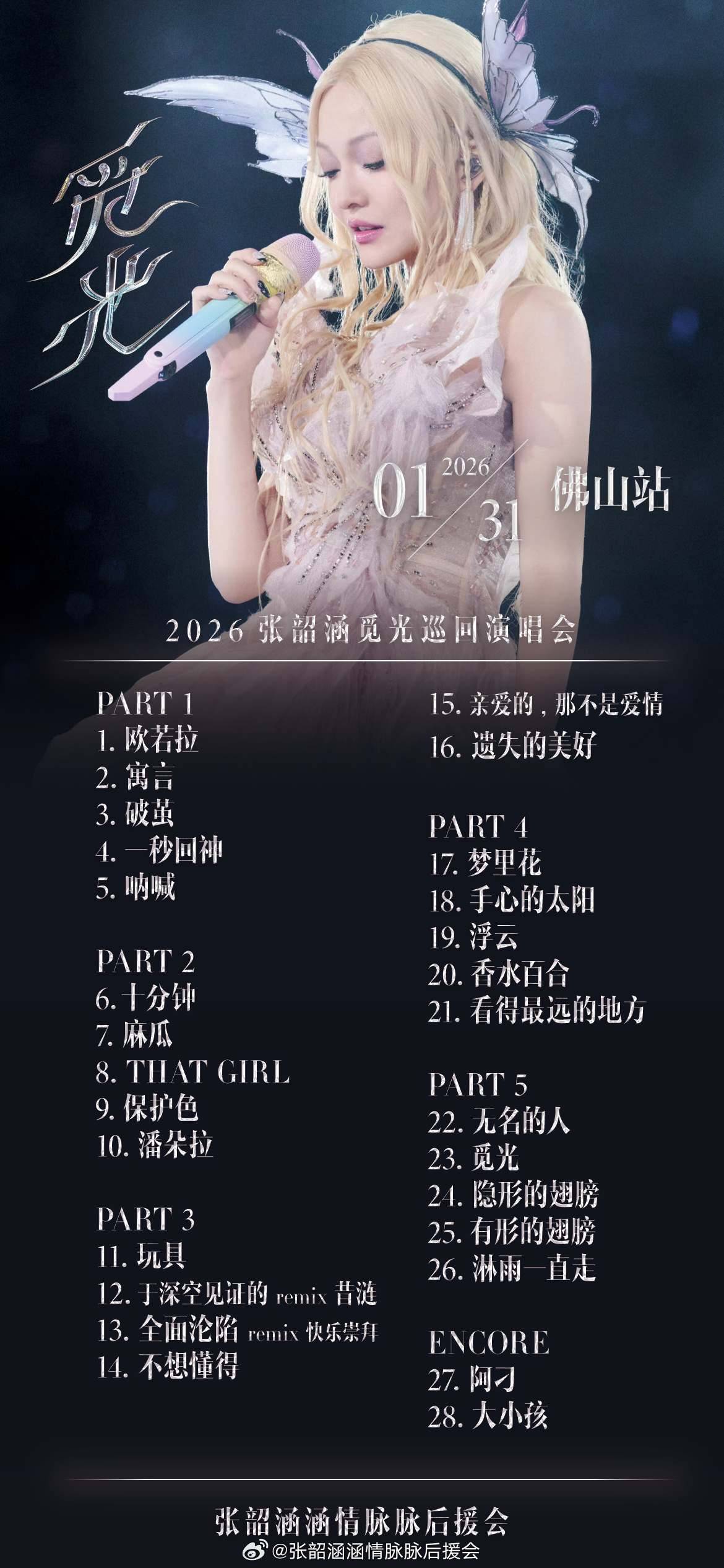 [情報] 2026年覓光世界巡迴演唱會佛山場歌單