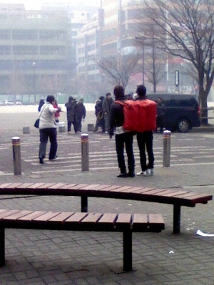 18號,BIGBANG(TOP,G-Dragon,太陽,勝利,大成)的大成和勝利在日山LaFesta街道上出演