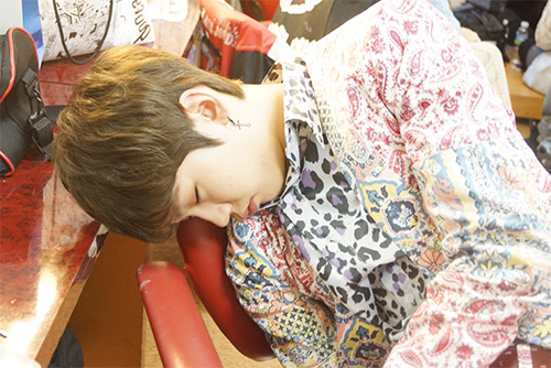 疲累地坐在椅子上睡著的鎰勳君TTTT