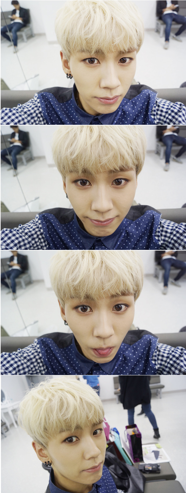 鏡子裏反射的樣子也帥氣的旼赫君<3