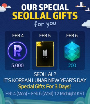 Free SEOLLAL Gifts! February 4th ~ 6th! Don't Miss Out!