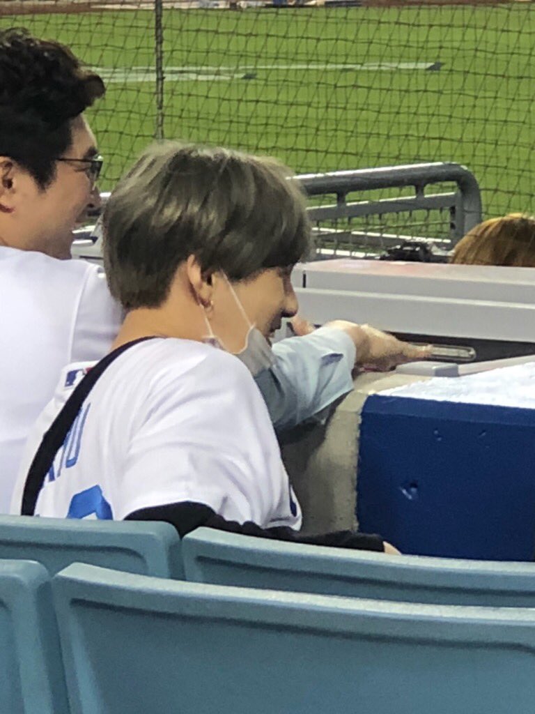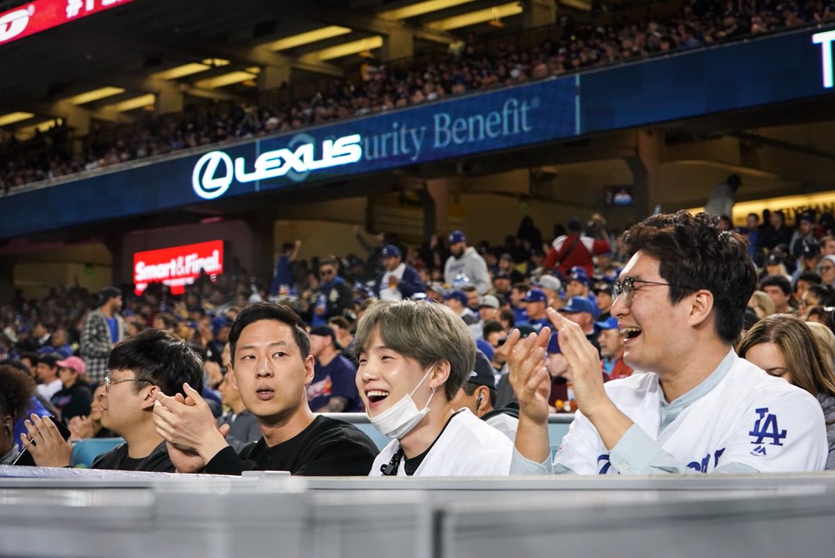 Yoongi from @bts_bighit takes in a Dodgers game.
