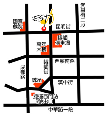 捷運 : 搭乘藍線到捷運西門站下車,六號出口沿漢中街轉峨嵋街直行,或成都路直行右轉昆明街,步行約3~5分鐘