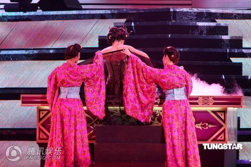 。 向來性感火辣的CoCo還在舞台上大方演出“貴妃出浴”的戲碼,她在浴池裡搔首