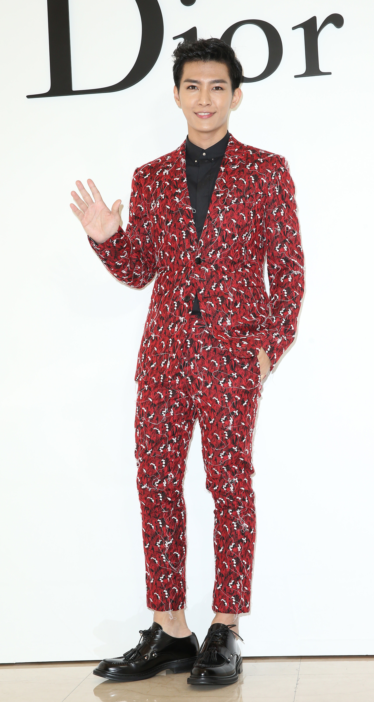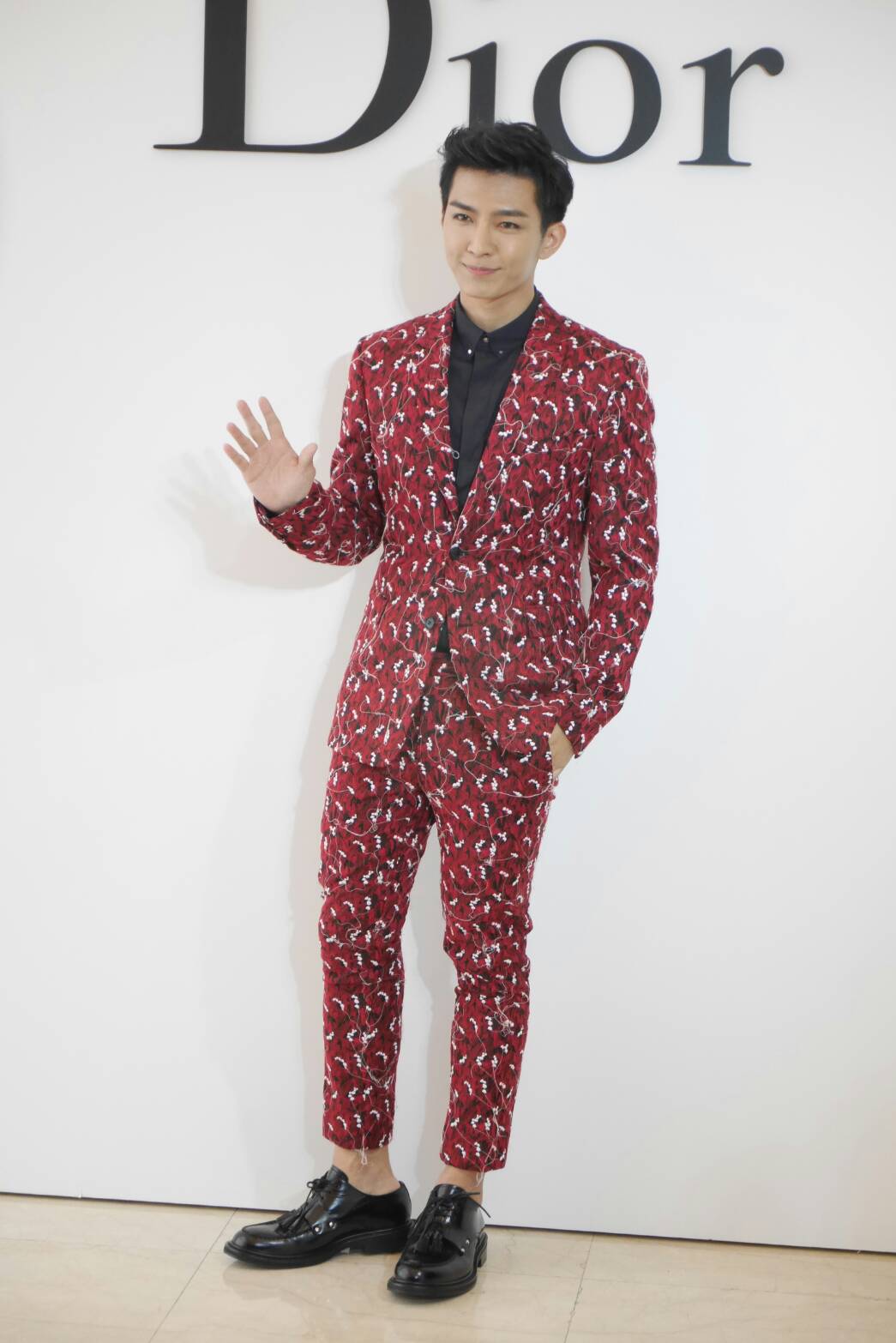炎亞綸以紅色刺繡圖案西裝示範Dior年輕紳士的優雅。彭欣偉攝