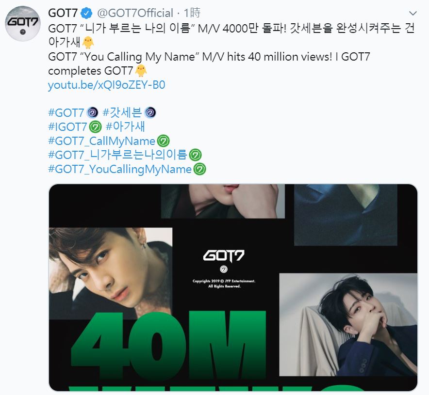 GOT7 "You Calling My Name" M/V hits 40 million views! I GOT7 completes GOT7(鳥