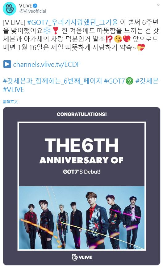 01/16 (四) 00:00 # GOT7出道六周年快樂 #