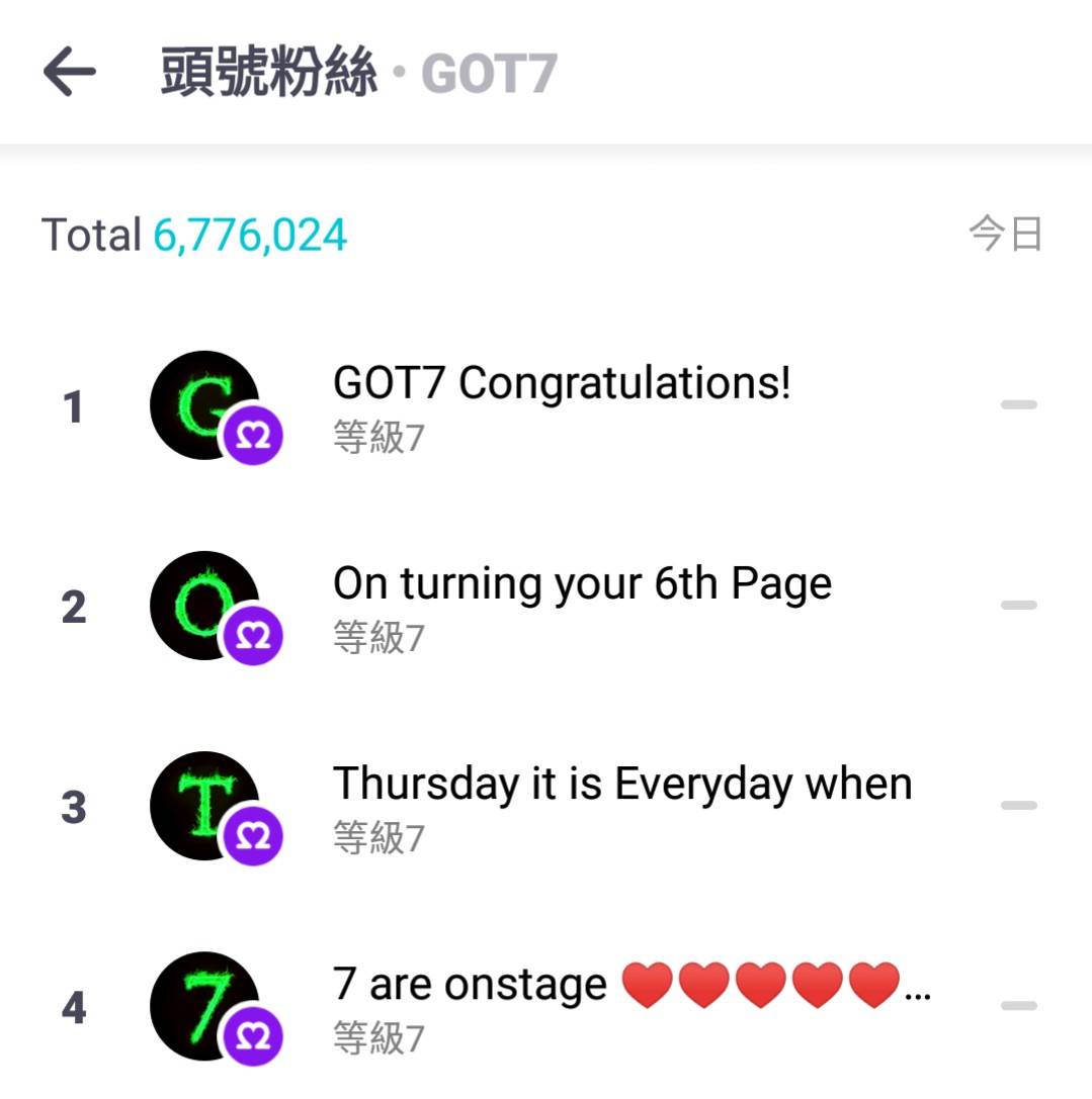 Vlive GOT7頻道的鳥寶寶TOP4帳號 慶祝GOT76週年