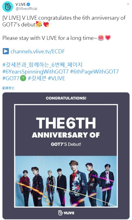 V LIVE congratulates the 6th anniversary of GOT7's debut