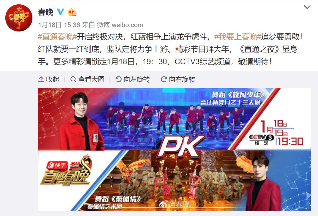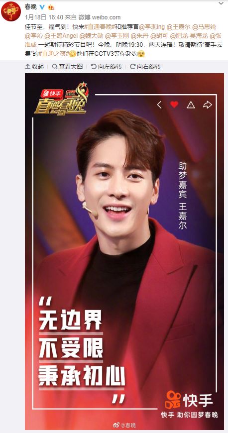 01/18 (六) 19:30 [放送] 直通春晚 (王嘉爾) CCTV春晚 & 騰訊娛樂