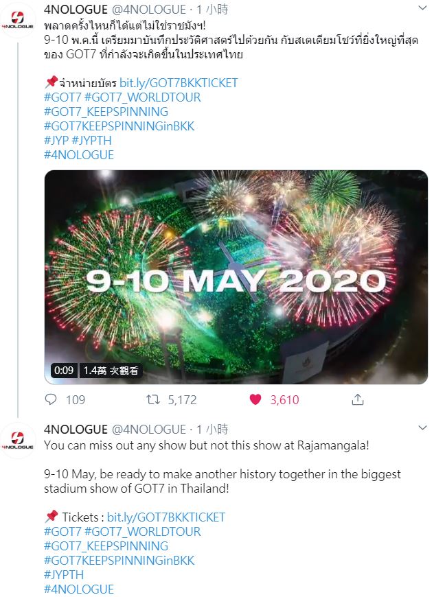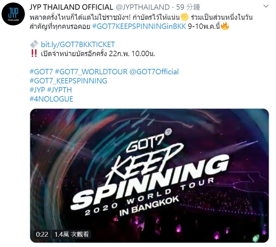 分。 #GOT7KEEPSPINNINGinBKK今年5月9日至10日