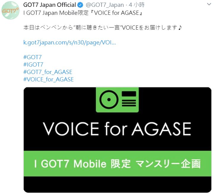 I GOT7 Japan Mobile限定『VOICE for AGASE』