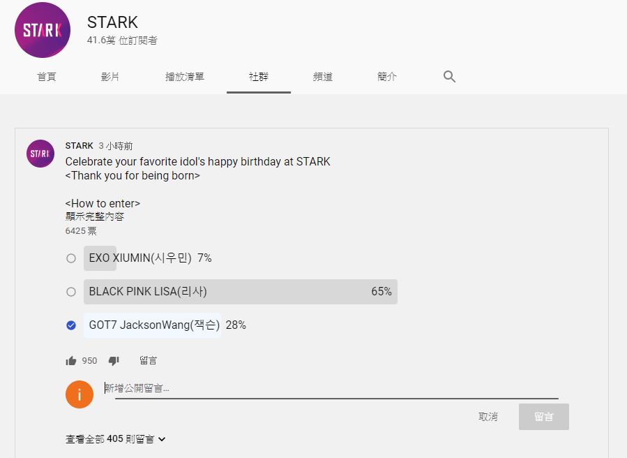 2. StarKay官方YouTube頻道社區投票