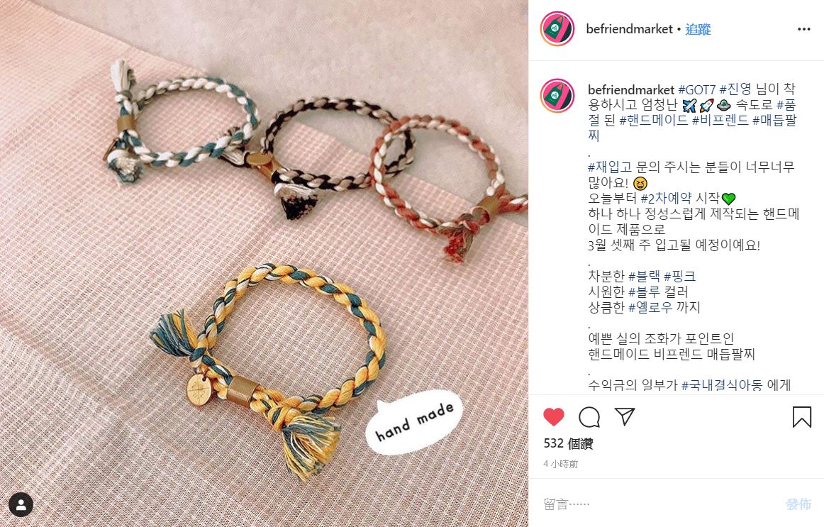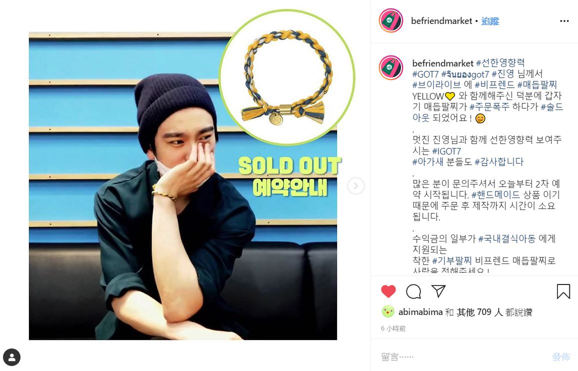 befriendmarket IG (關於珍榮昨天Vlive上戴的公益手鍊)