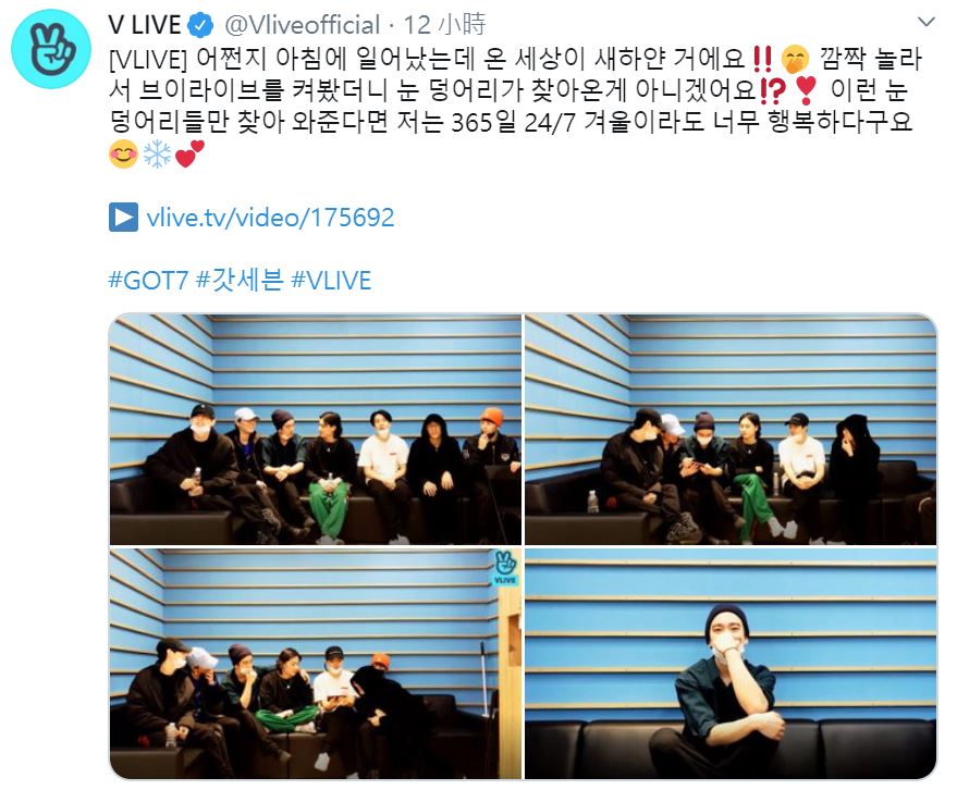 怪不得早上起來全世界都是雪白的!! 嚇了一跳,打開Vlive一看原來是雪球來了。