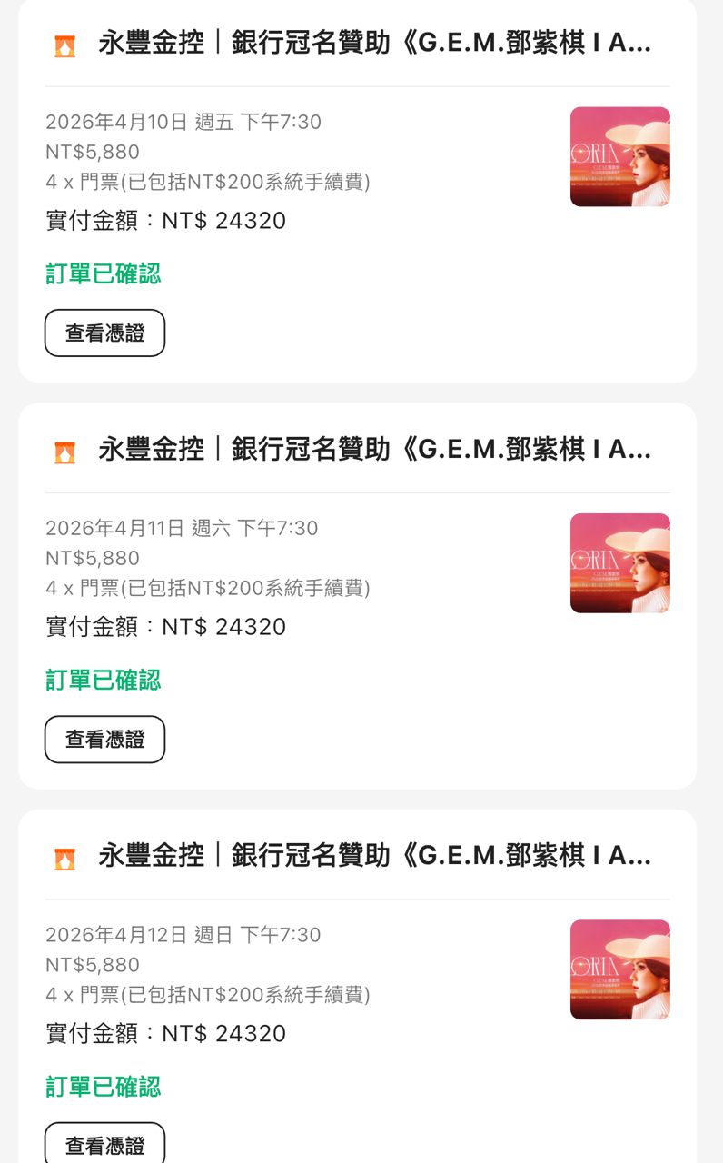 賣 一張/6880/台北/面交