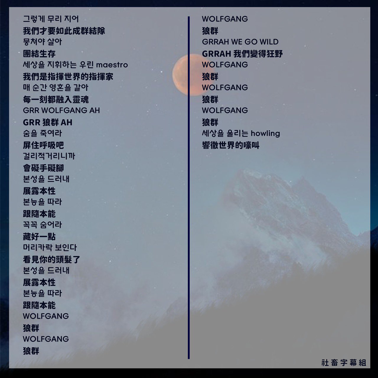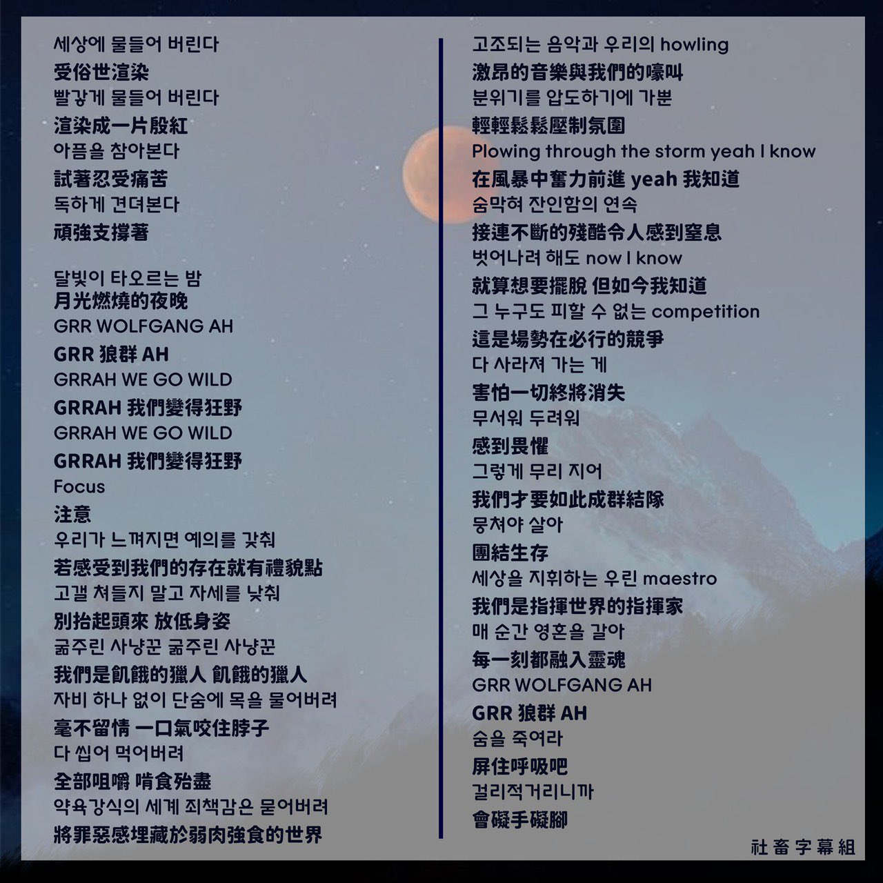 歌詞中翻 cr:SKZ社畜用愛發電字幕組