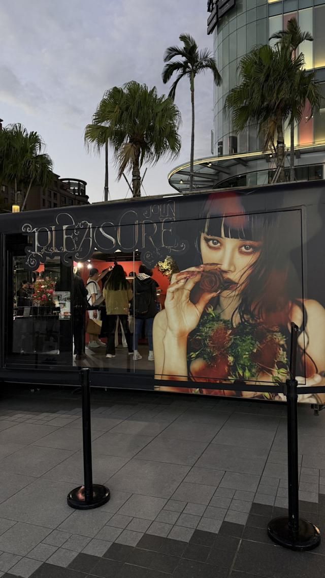 歌迷搶先朝聖「PLEASURE POP-UP STORE 愉悅至上快閃艙」。(記者陽昕翰攝)