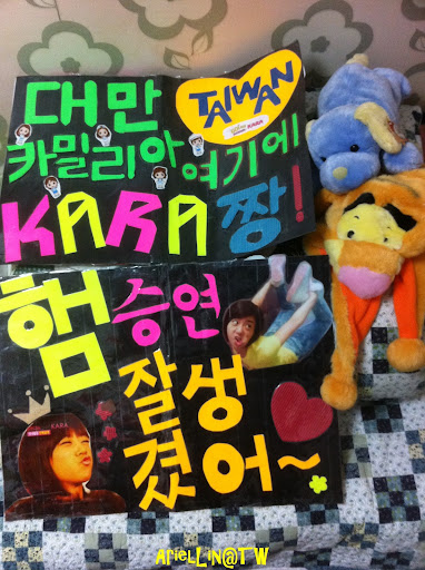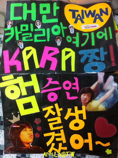 只能現場出力還有幫忙寫韓文給KARA,真是有點慚愧