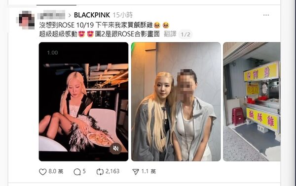 演唱會上吃的鹹酥雞就是自己家的,甚至PO出跟Rosé的合照,貼文超過8萬人按讚。店家