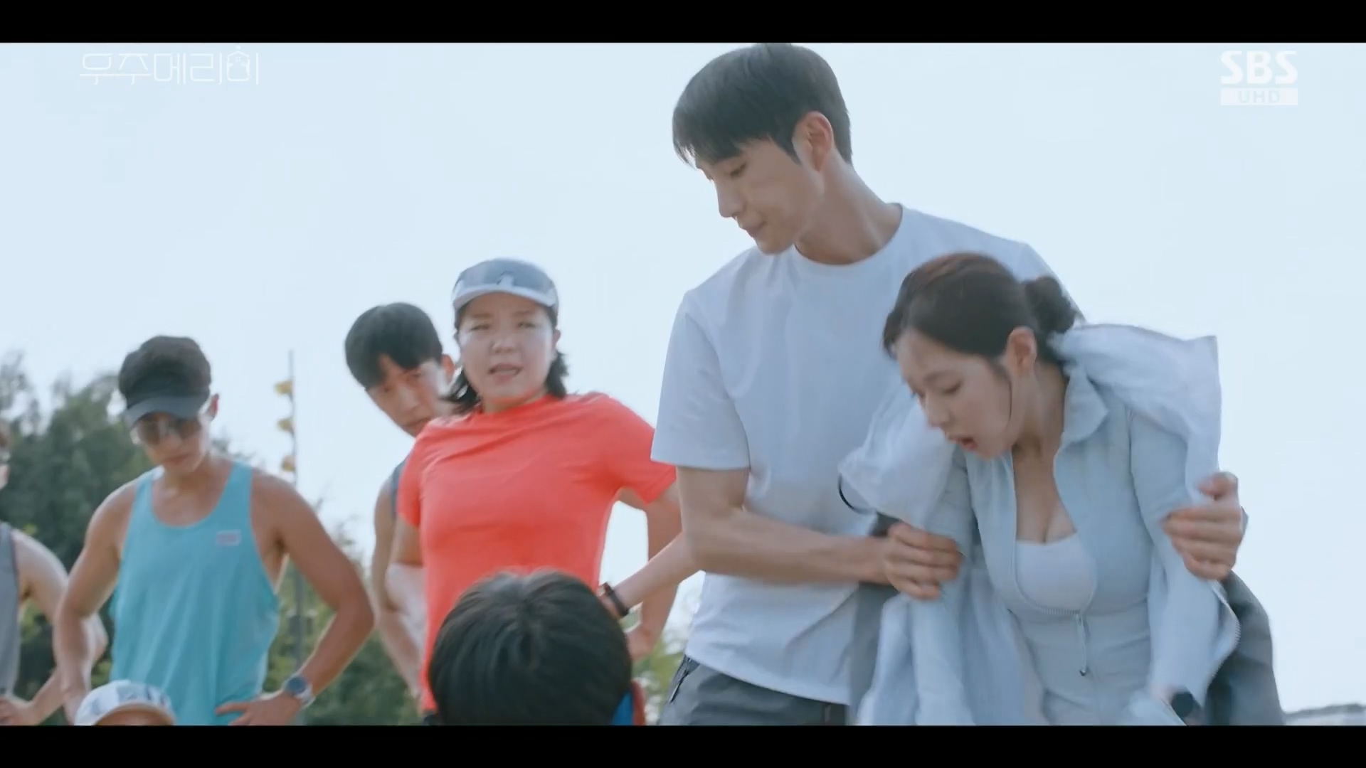 情況的白商賢(裴奈拏 飾)脫下外套遞給尹珍敬,說了句「請稍微遮一下」,隨即代替