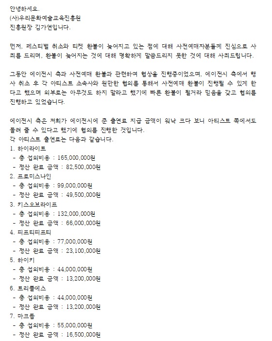 Wonder K-pop Festival 將出演者的邀請金額公開