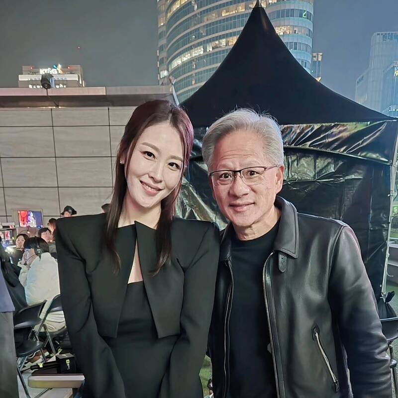 南韓正妹主播緊貼黃仁勳合影 網驚喊好羨慕
