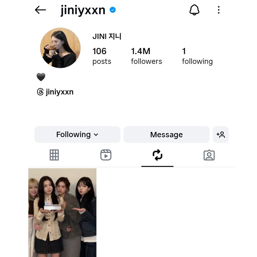 @mixxjiwooo表示 : “我哭了,JINI在IG轉發了NMIXX。
