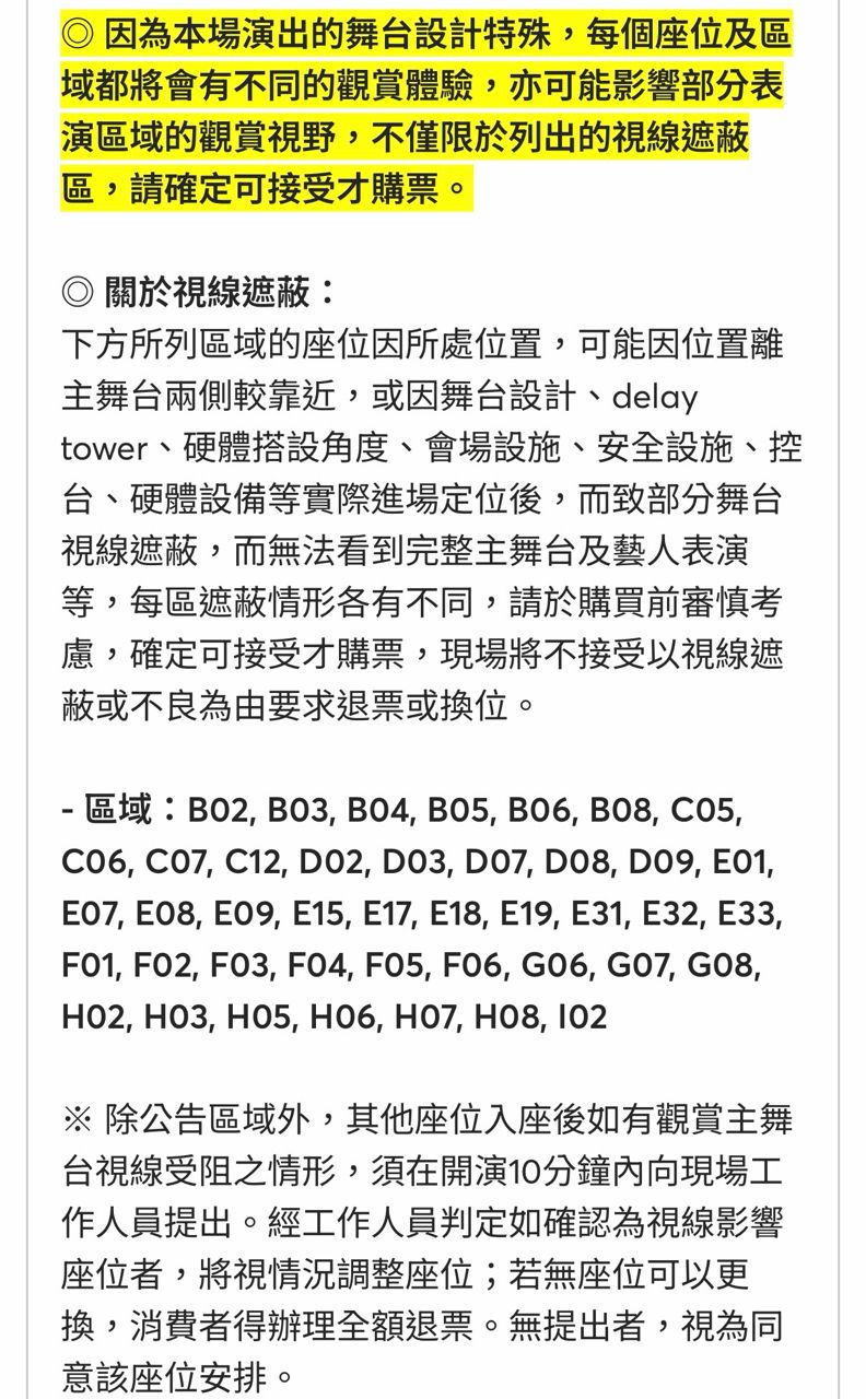 視線遮蔽為由退票或換位,感謝體諒。