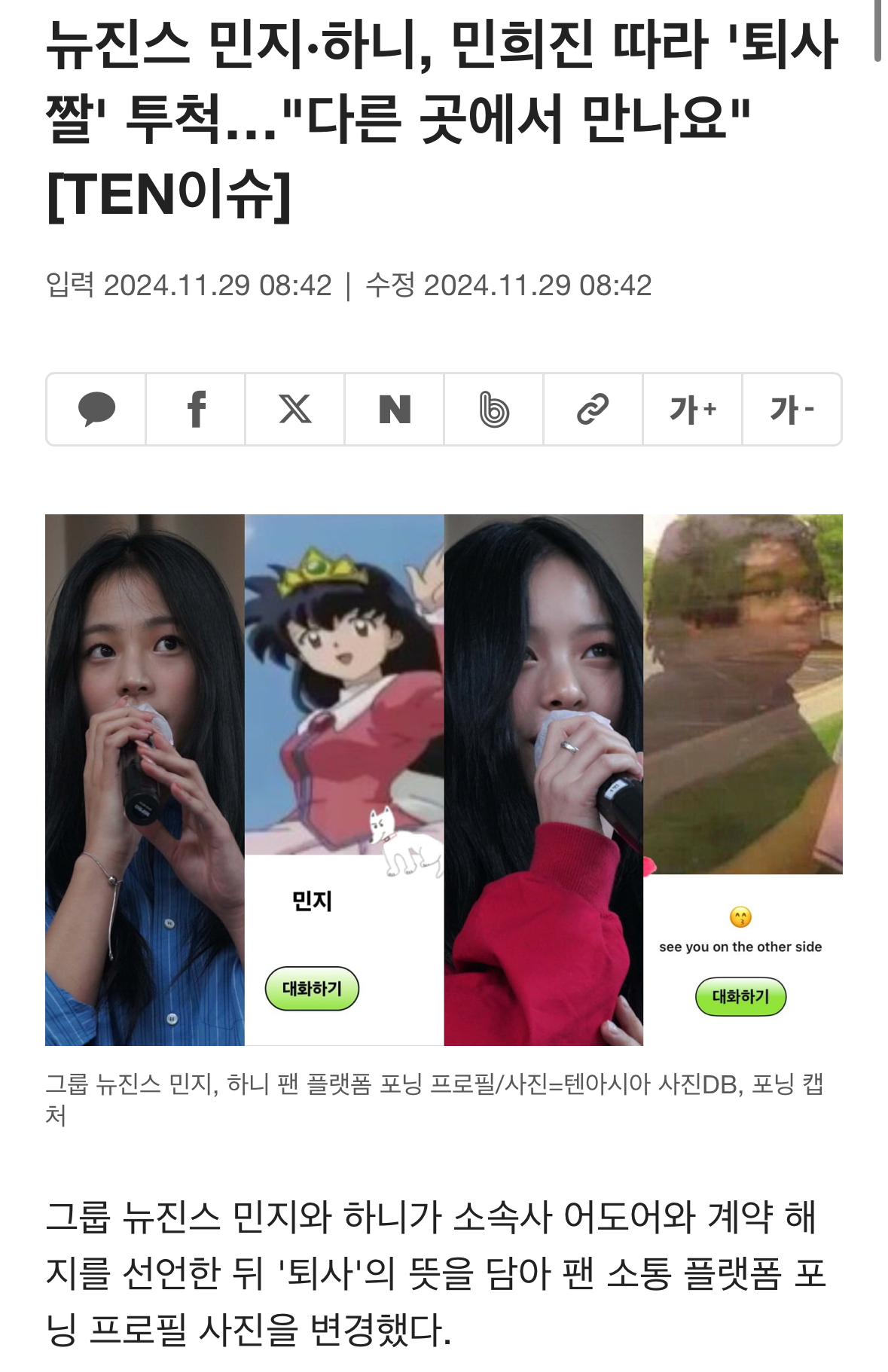 據悉,4名成員於11日和ADOR代表進行了面談。其中,「Minji、Danielle」