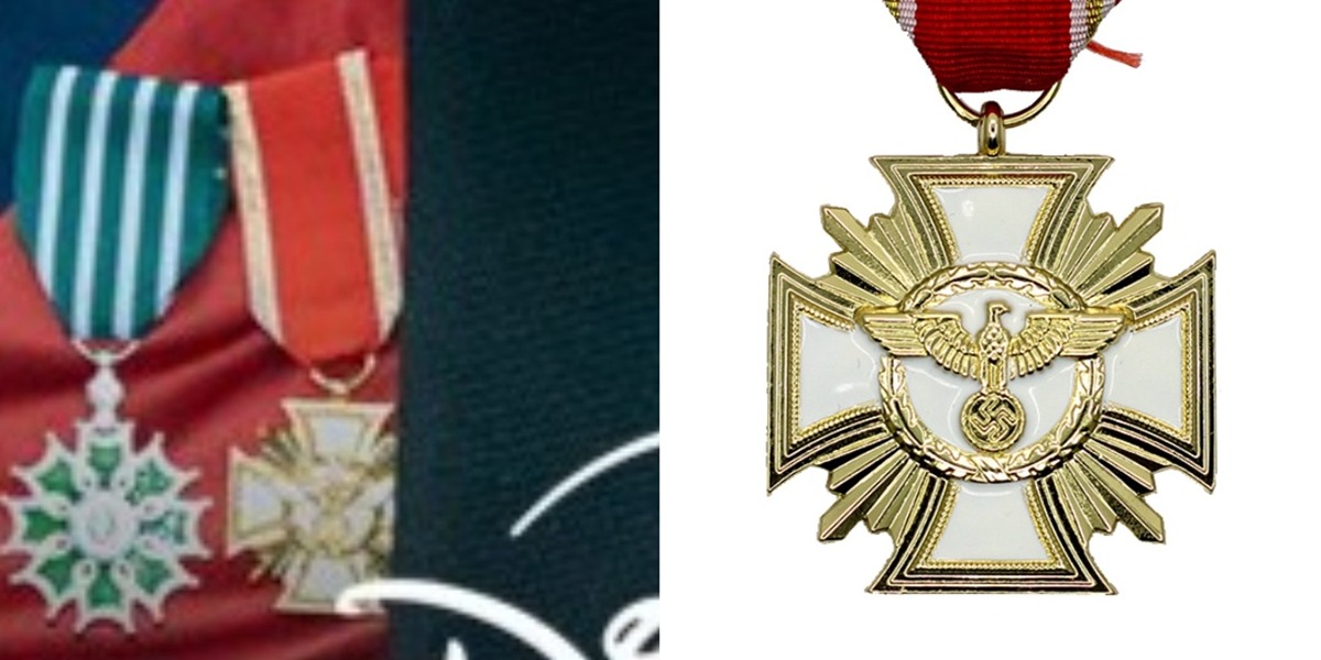 友發現朱智勛胸前佩戴的勳章,竟與德國納粹勳章極度相似,敏感內容隨即掀起社群熱議
