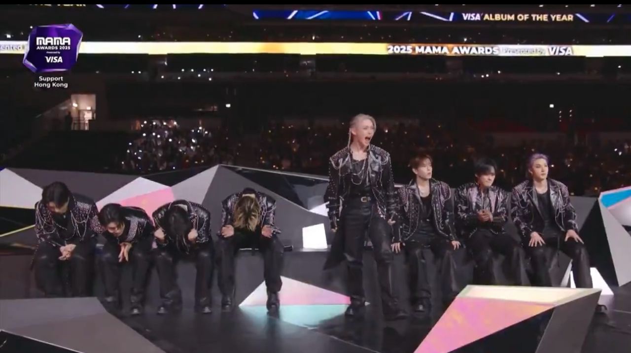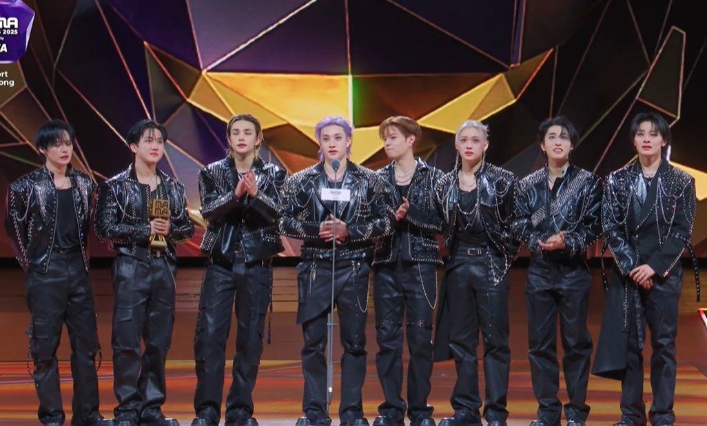 在 2025 MAMA Awards 現場,Stray Kids 奪下年度專輯(Album of the Year)大獎的瞬