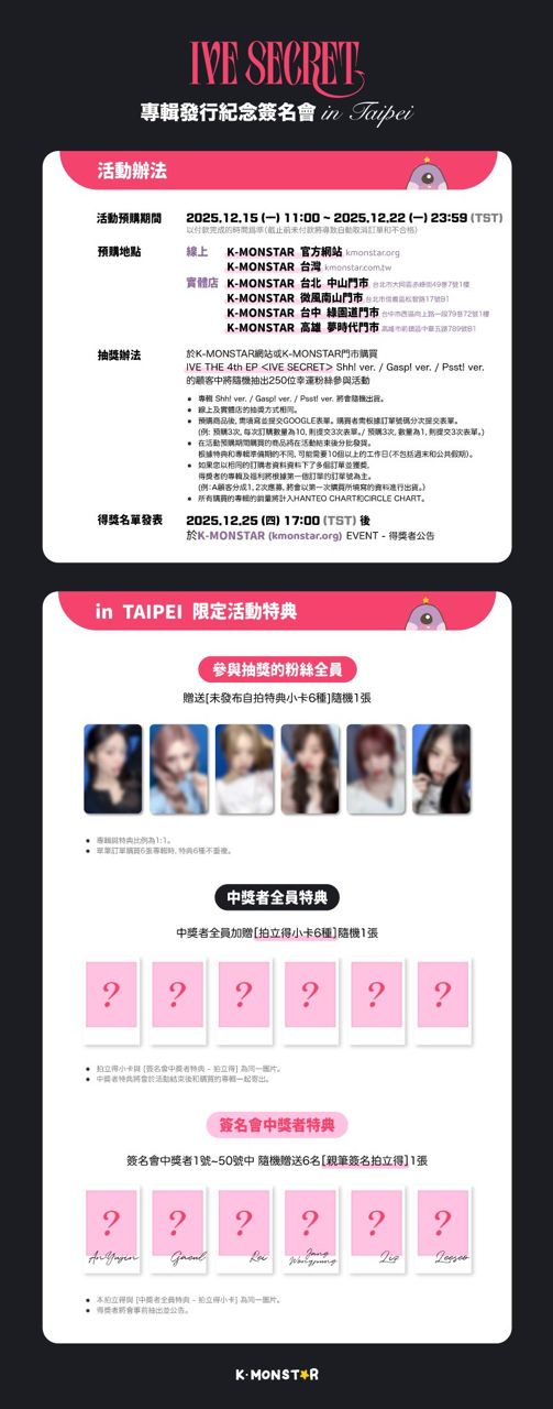 [情報] IVE THE 4th EP台北簽售會 1/11