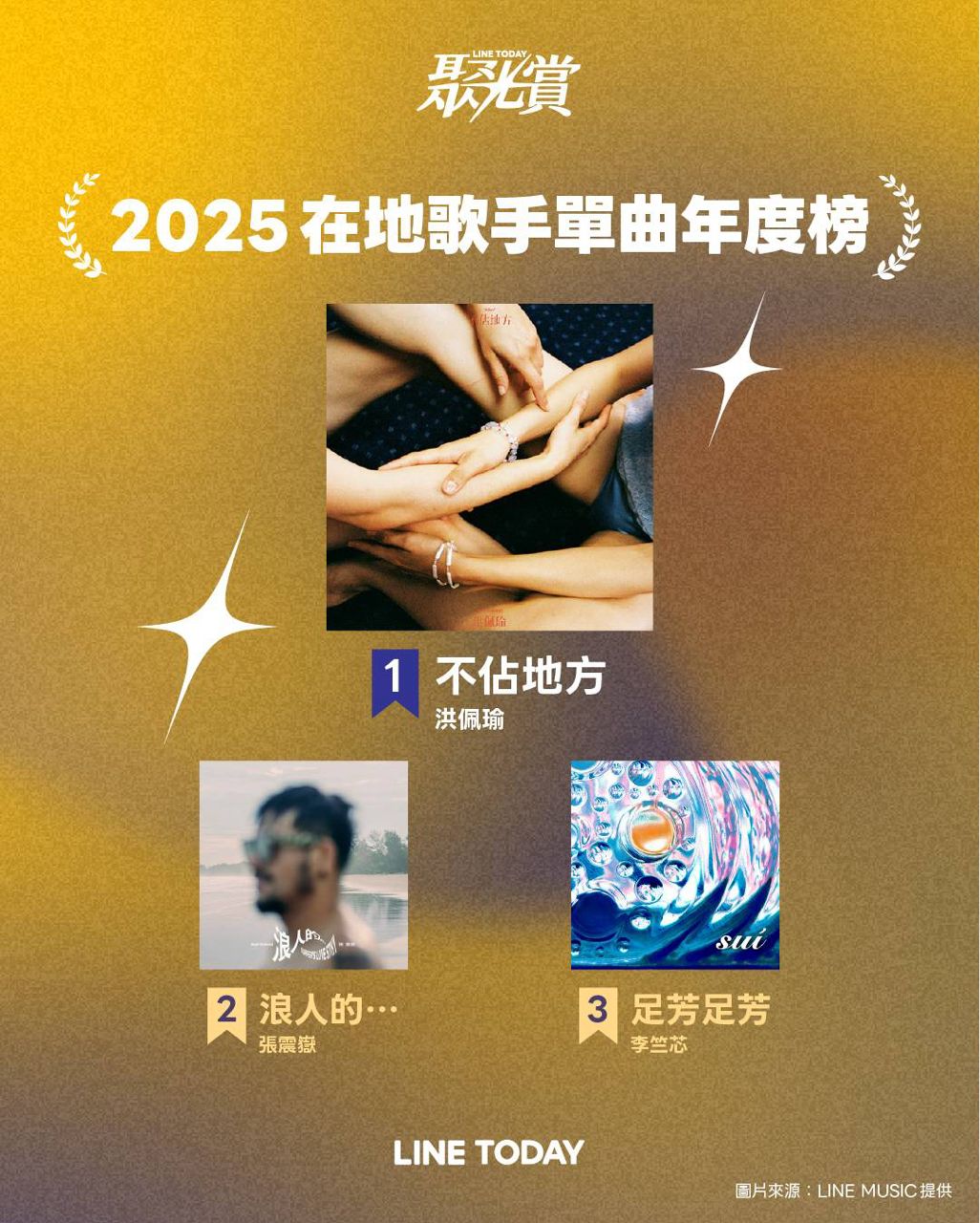 首屆LINE TODAY 聚光賞「2025 在地歌手單曲年度榜」由洪佩瑜〈不佔地方〉與「2025