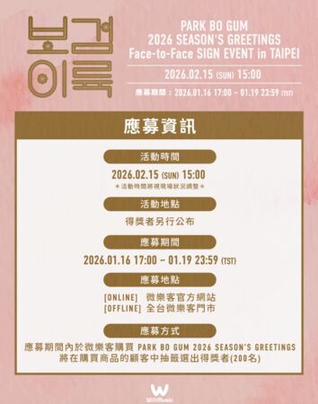 朴寶劍即將在2月15日以簽售會的形式來到台北,這次是為了2026年推出的年曆來台簽售