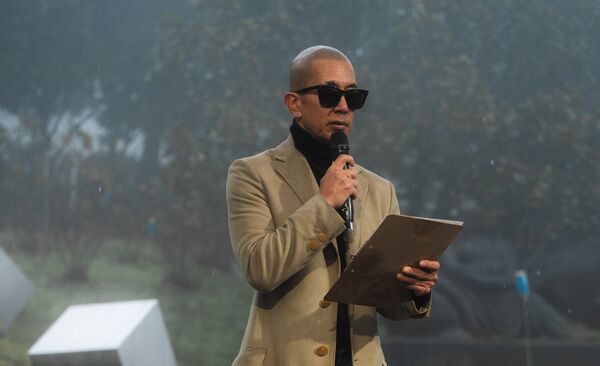 他2日下午現身金寶山,與S家一起舉辦大S雕像揭幕儀式,