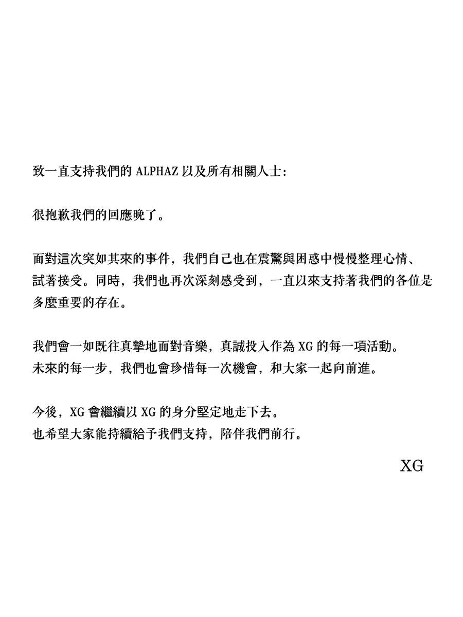 她們表示:「我們會一如既往真摯地面對音樂,真誠投入作為XG的每一項活動。」