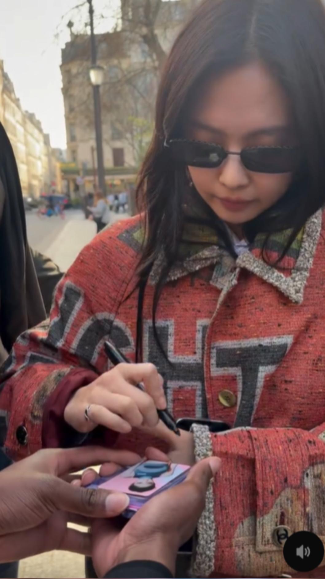 這段影片顯示,Jennie 近日在巴黎工作之餘抽空在街頭逛街,卻意外被大批粉絲認出並
