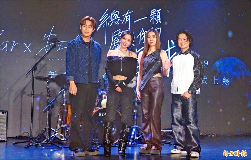 頌樂(左)與告五人合作中文單曲《總有一顆屬於你的星球》。(記者潘少棠攝)