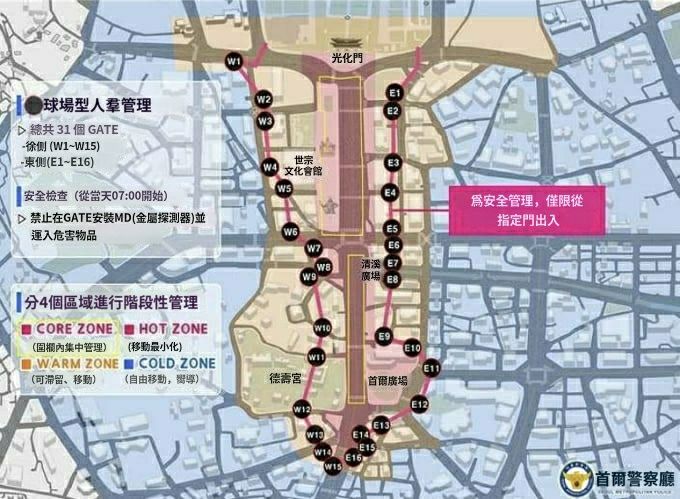 本次公演預計將湧入多達 26 萬人,預計投入約 6,500 名警察,光化門、市廳、景福宮