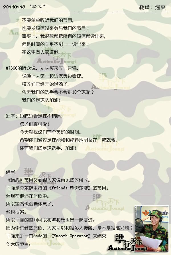 [準DJ] 0118廣播大意翻譯
