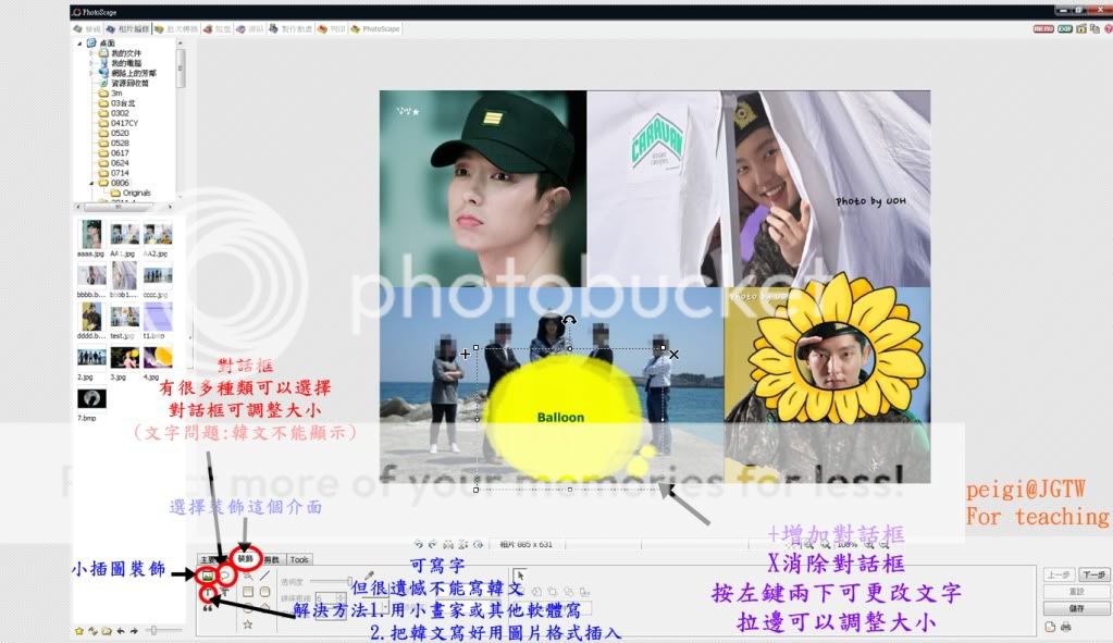 如果需要寫韓文,請在photoscape中,選擇對話框和調整到文字對應的大小