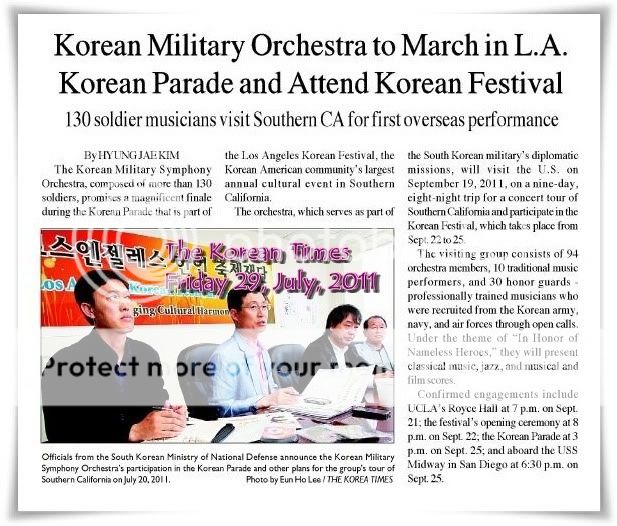 韓國國軍交響樂團將在South of CA停留9天、於五個不同地點進行演出。其行目的是致力