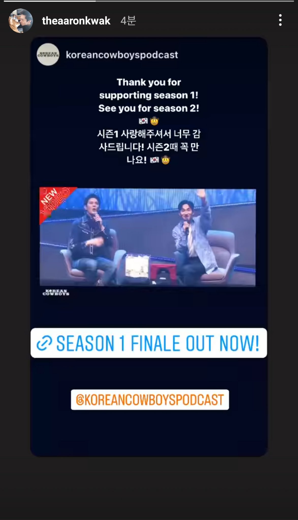 (轉發Korean Cowboys IG Story)