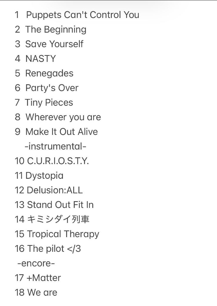 亞巡首場歌單請參考