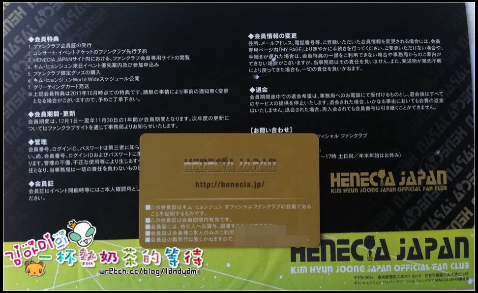 [閒聊] 賢重『HENECIA JAPAN』FANCLUB 會員卡