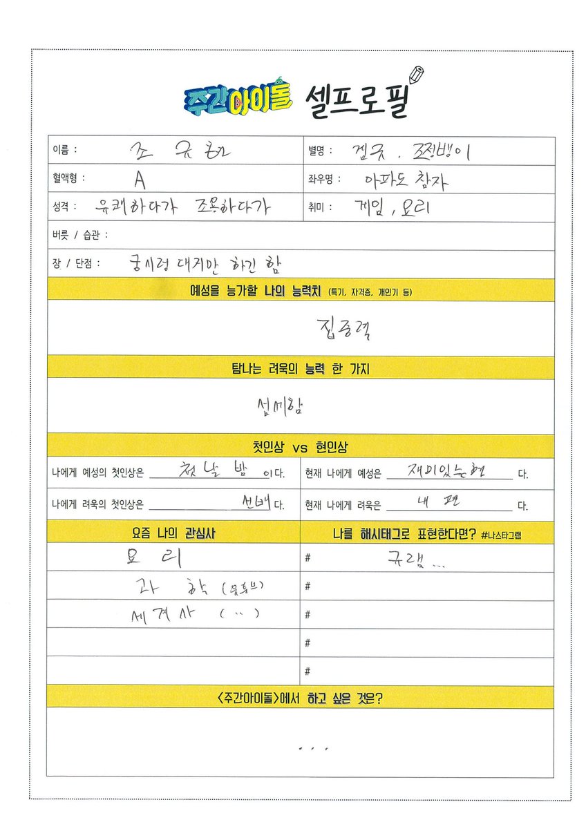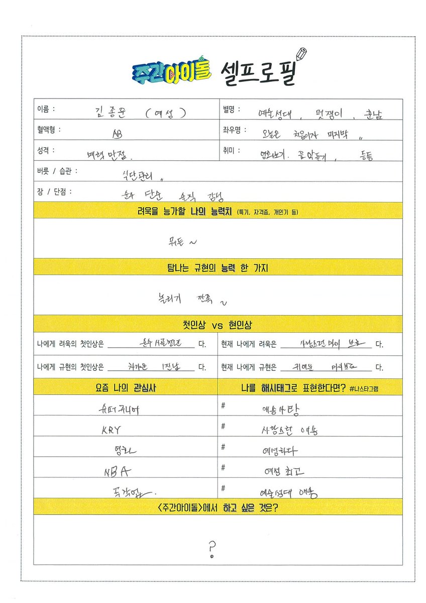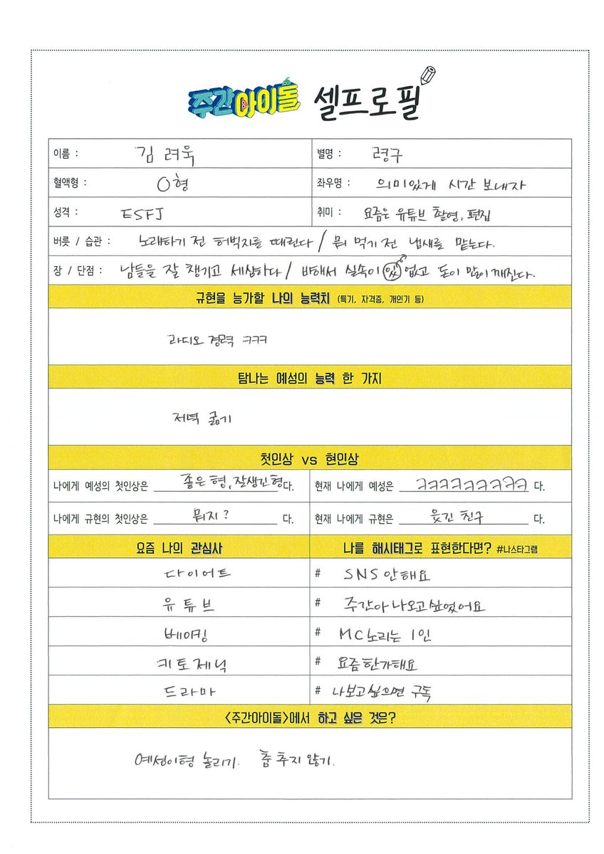 [情報] 200619 MBC 一週偶像 親自寫的個人履歷